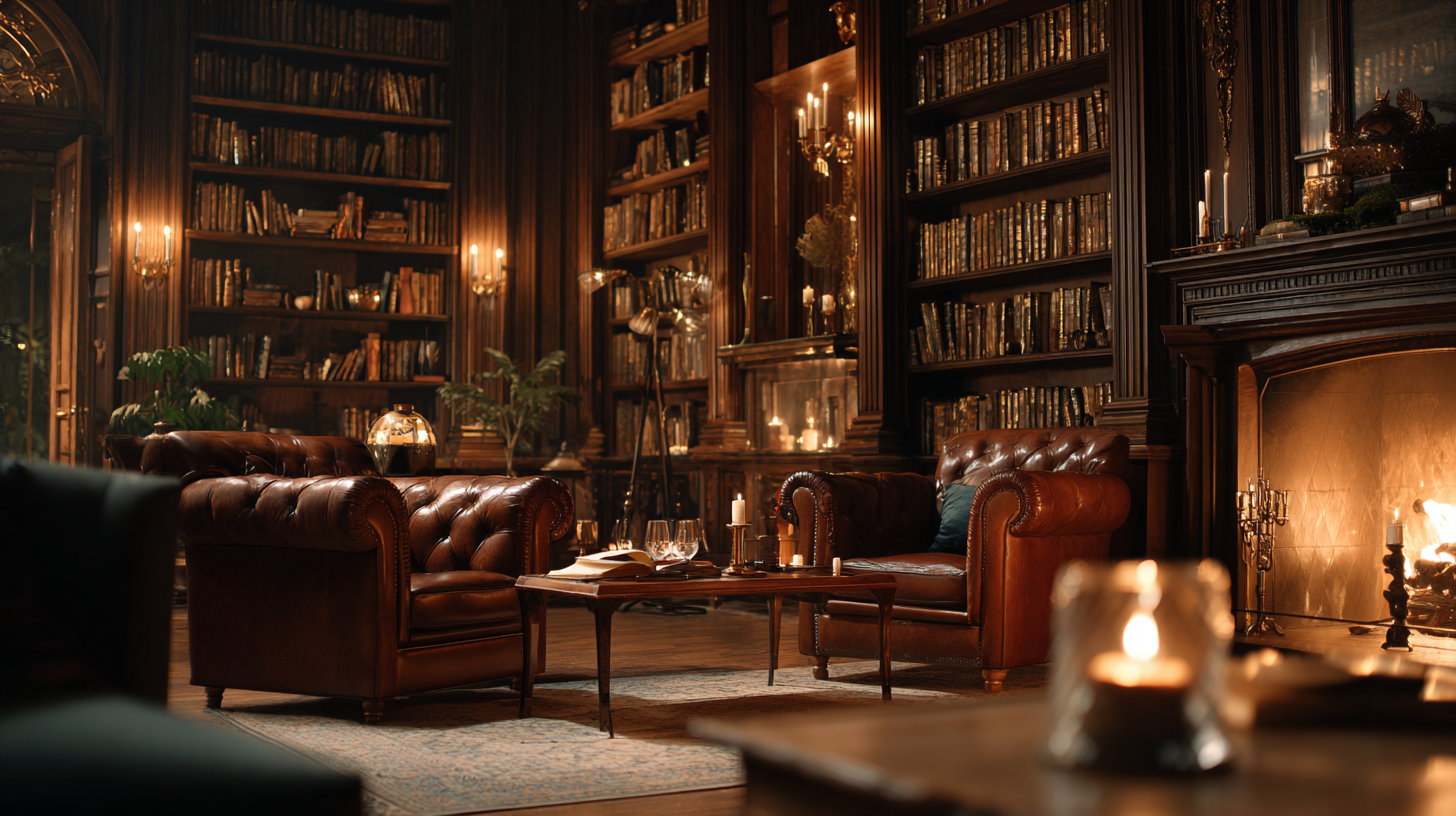 A room of deep mahogany and low light, where the scent of leather armchairs, tobacco leaves, and aged oak hangs in the air. Subtle traces of citrus, spice, and amber weave through, giving a sense of intellect and mystery.