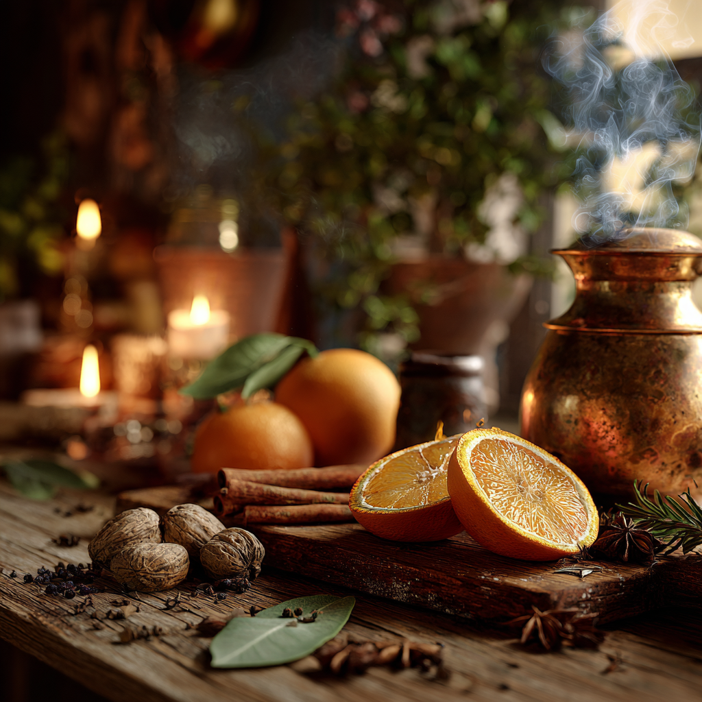 As the fragrance deepens, a comforting heart unfolds. Imagine warm toasted nuts at a winter fair—smoky chestnut, buttery walnut, fiery ginger, and aromatic clove blending together in a delicious cloud of spiced warmth. It wraps around you like a soft wool scarf.